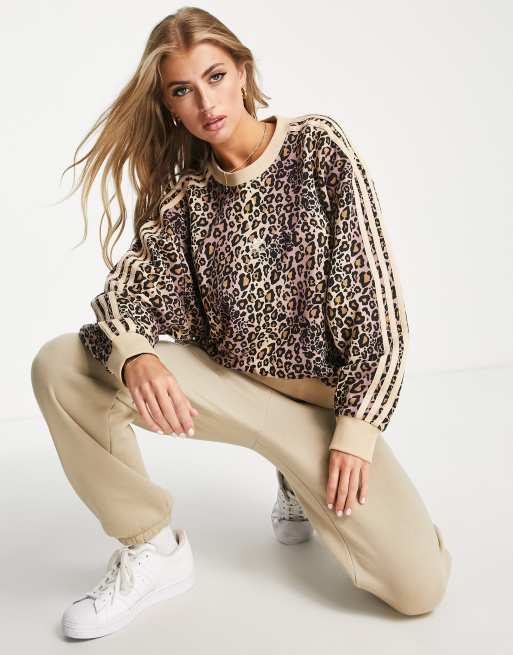 Leopard print adidas clearance sweatshirt, adidas Originals Sweatshirt With Animal Pattern in Brown Lyst clearance