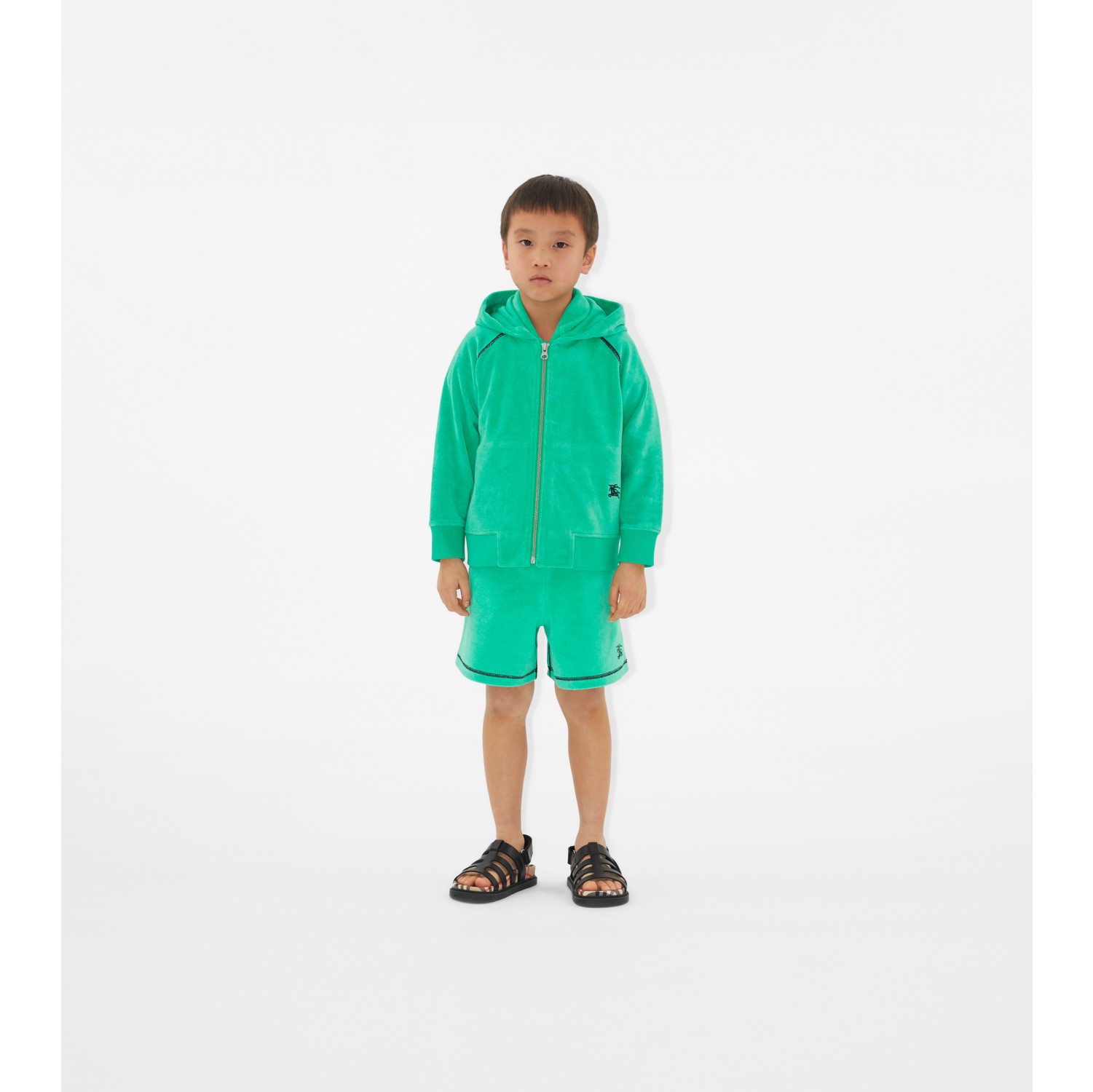 Cotton Blend Towelling Zip Hoodie in Bright jade Burberry Official