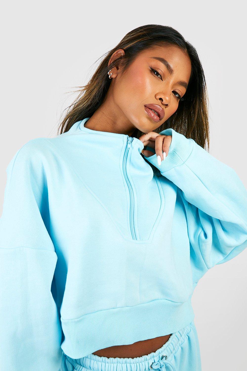Cropped Half Zip Sweatshirt And Cuffed Jogger Tracksuit boohoo
