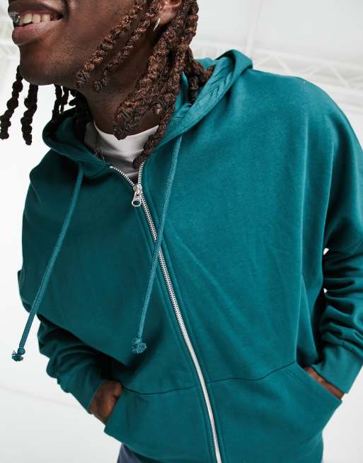 ASOS DESIGN super oversized zip through hoodie in teal green ASOS