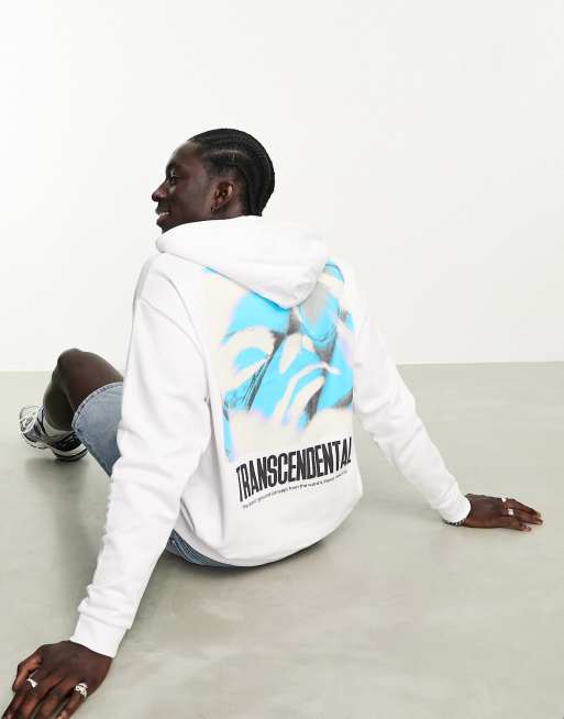 ASOS DESIGN oversized hoodie in white with photographic back print and chest print