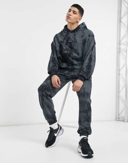 Good For Nothing oversized hoodie with logo in gray tie dye wash