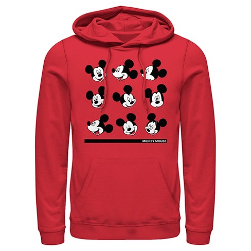 Men s Mickey Friends Facial Expressions Pull Over Hoodie Red Medium