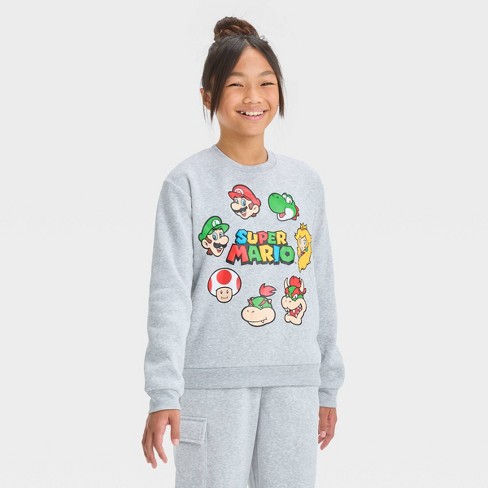 Girls Super Mario Crew Neck Pullover Sweatshirt Heather Gray XS