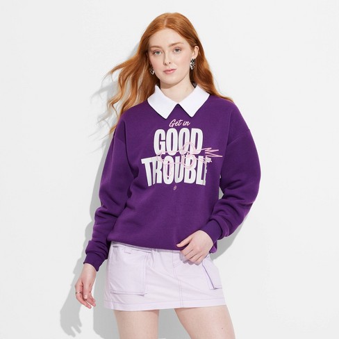 Women s Good Trouble Collared Graphic Sweatshirt Plum Purple XS