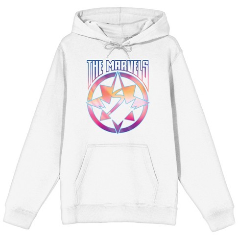 The Marvels Rainbow Title Logo Adult White Graphic Hoodie Small