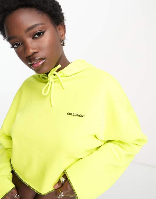 COLLUSION branded cropped hoodie in lime ASOS