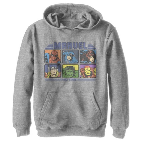 Boy s Marvel Comics Retro Avengers Boxed Up Pull Over Hoodie Athletic Heather Large