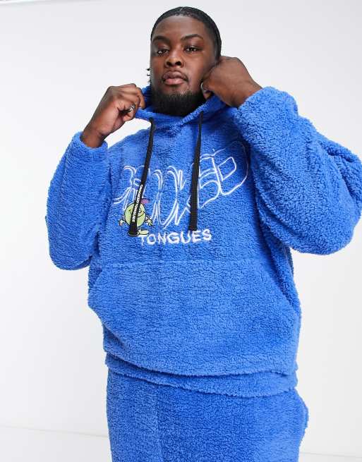Crooked Tongues oversized hoodie in teddy borg with logo and