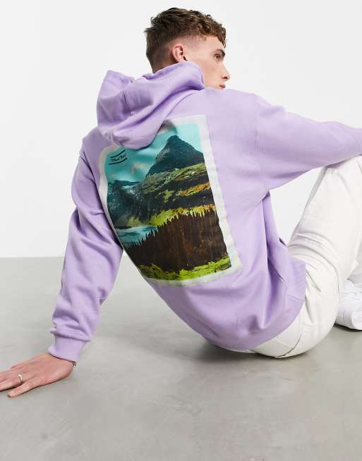 ASOS DESIGN oversized hoodie in lilac with scenery back print