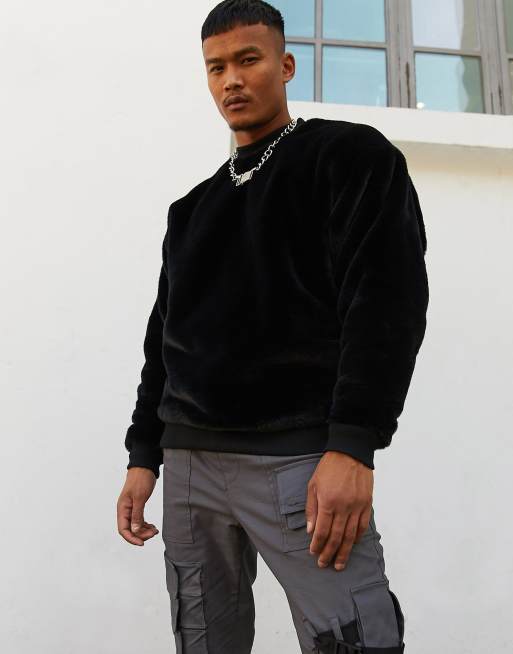 Fur clearance sweatshirt mens, ASOS DESIGN oversized faux fur sweatshirt in black ASOS clearance