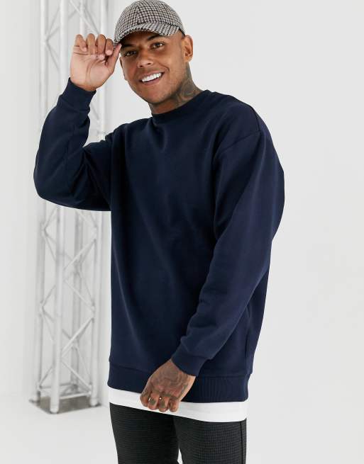 ASOS DESIGN oversized sweatshirt with t shirt hem in navy
