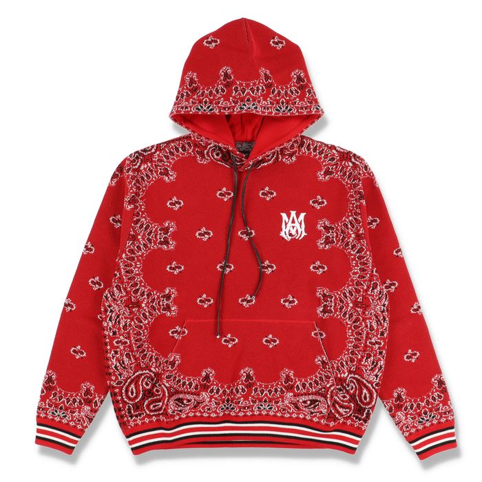 Bandana clearance hoodie red, Amiri Red Bandana B Ball Knit MA Logo Hoodie Grailed clearance