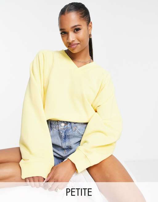Topshop Petite v neck boxy sweatshirt in yellow ASOS