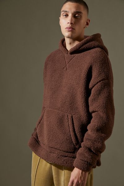 Brown clearance sherpa hoodie, ZEZCLO Men s Solid Fluffy Sherpa Hoodie Oversized Hooded Kangaroo clearance