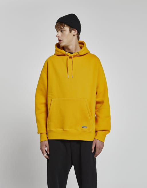 Pull Bear hoodie with rubberized logo in mustard ASOS