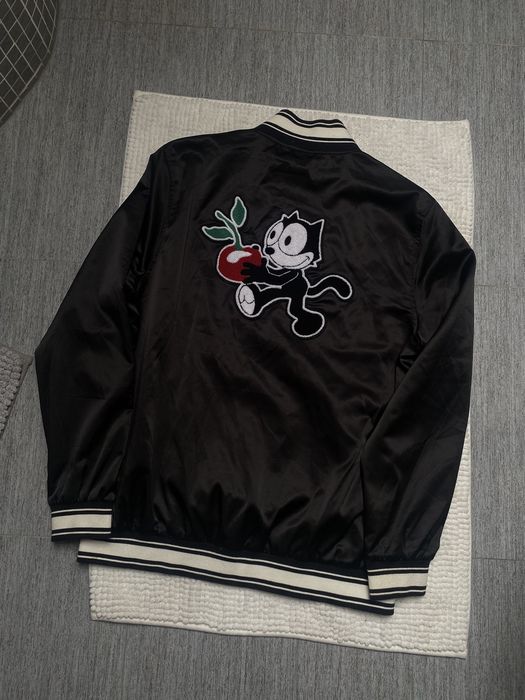Huf x felix clearance the cat hoodie, Huf Huf x Felix The Cat L Satin Jacket Bomber y2k Giacca Black clearance