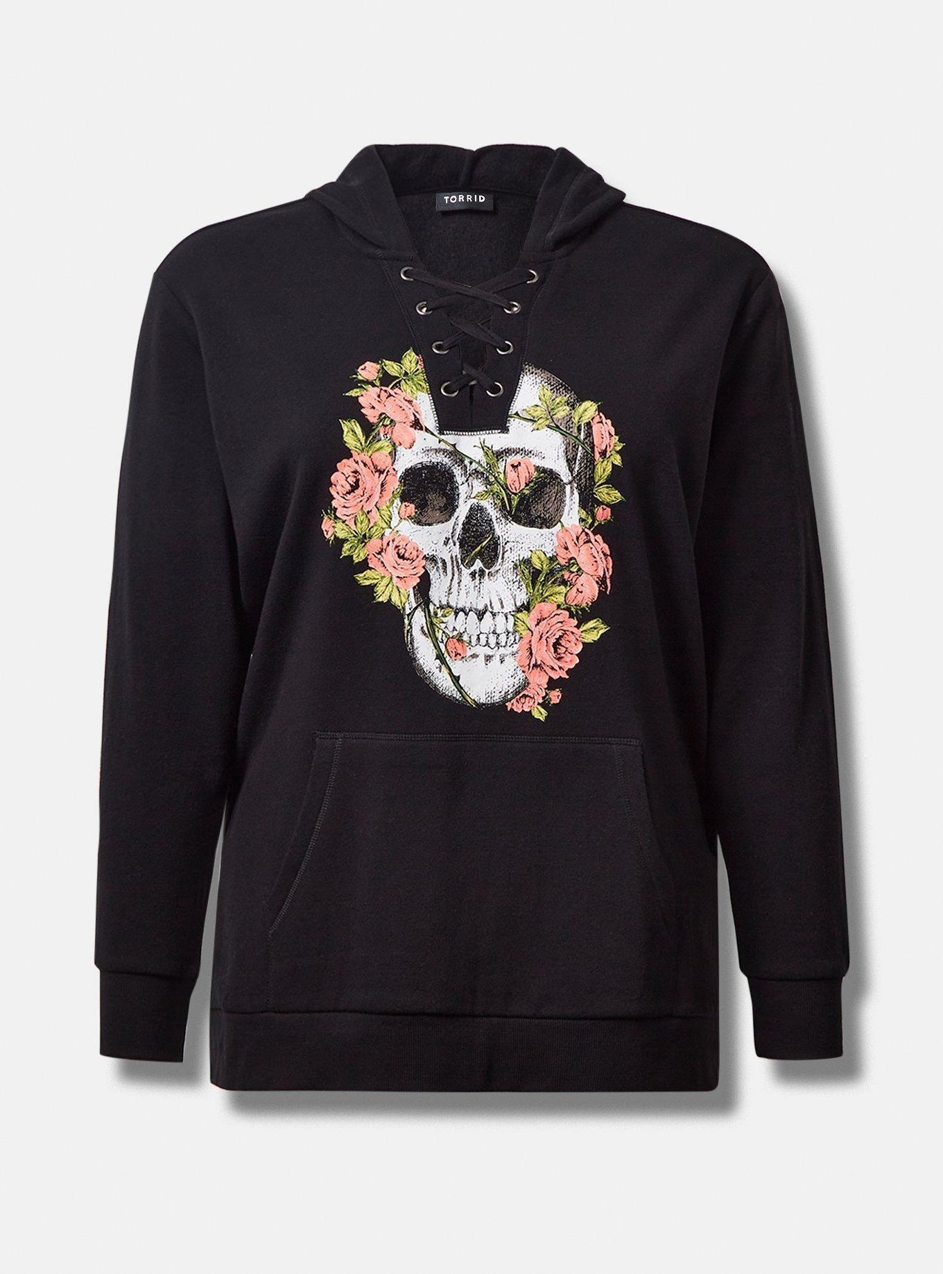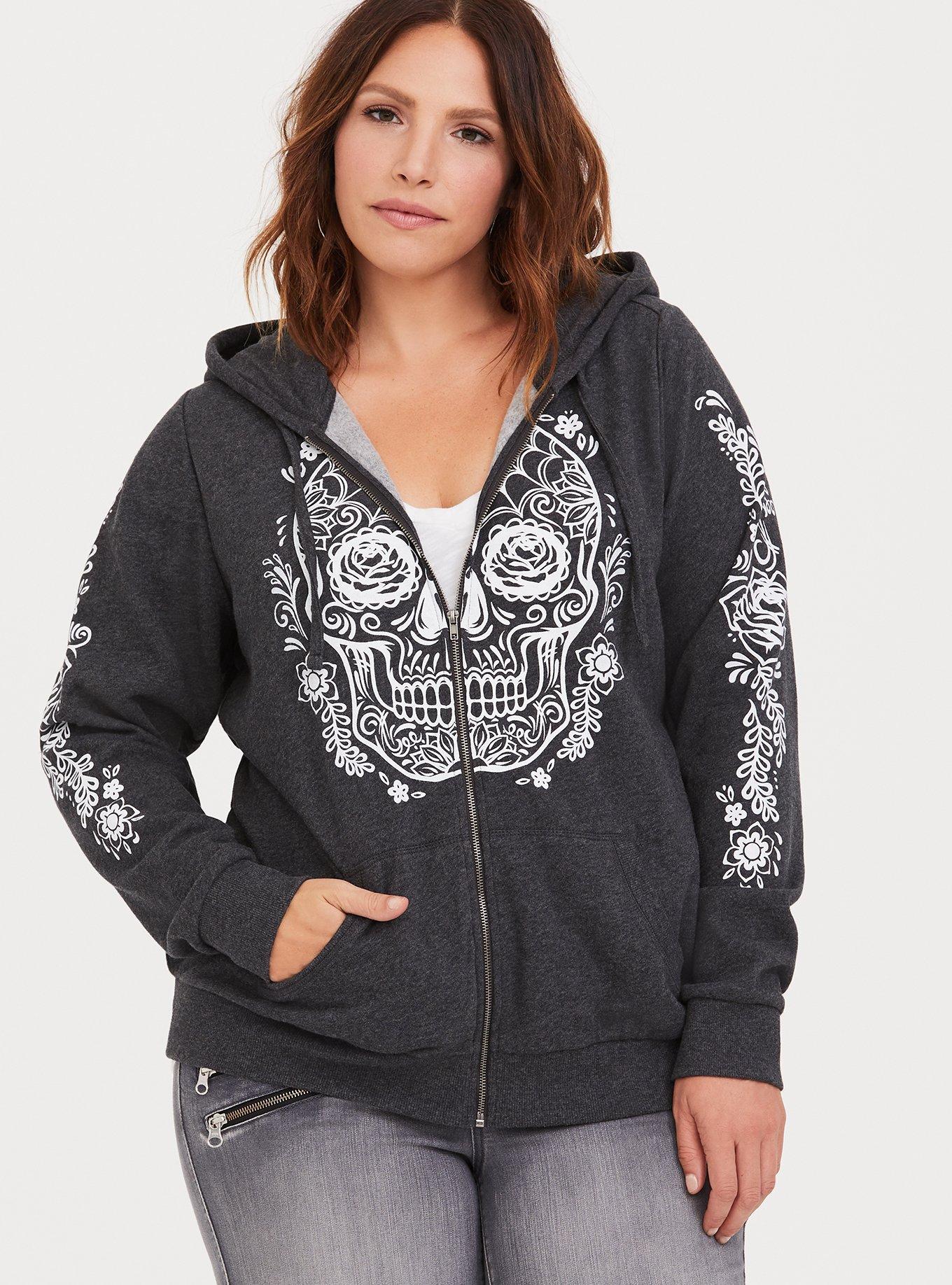Torrid clearance skull hoodie, Plus Size Grey Sugar Skull Zip Hoodie Torrid clearance
