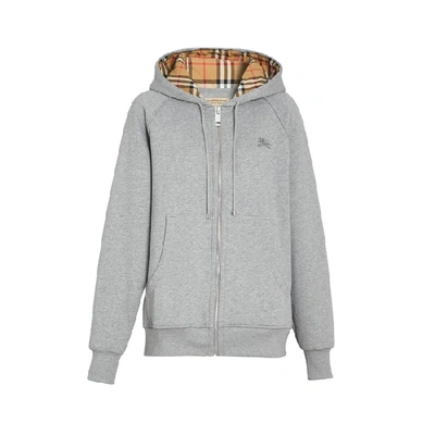 Burberry Vintage Check Detail Jersey Hooded Top In Pale Grey