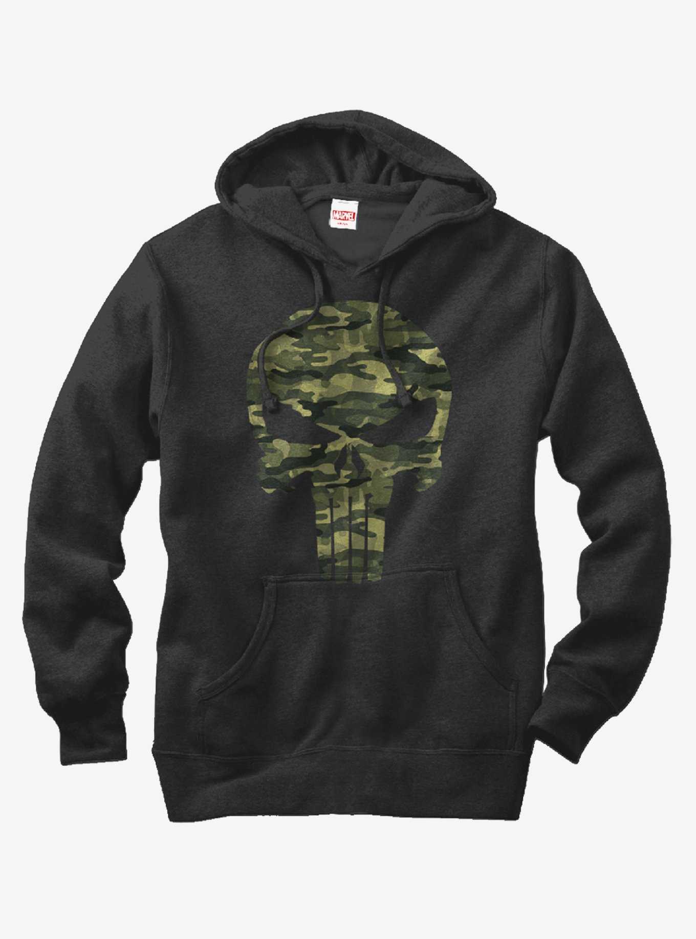 Marvel The Punisher Camo Skull Symbol Hoodie BLACK Hot Topic