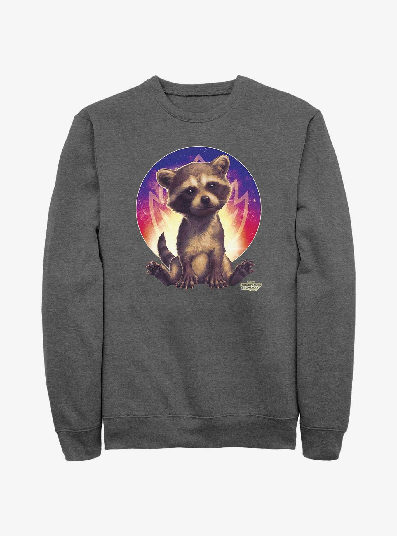 Rocket clearance raccoon sweatshirt, Marvel Guardians Of The Galaxy Rocket Sweatshirt GREY Hot Topic clearance