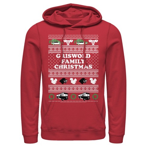 Men s National Lampoon s Christmas Vacation Griswold Family Christmas Ugly Sweater Pull Over Hoodie Red Large