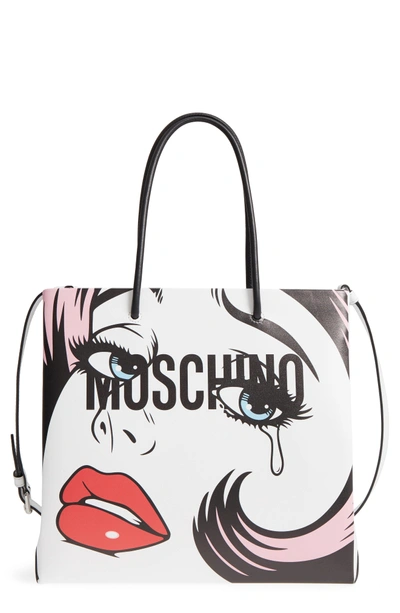 Moschino crying girl clearance hoodie, Graphic Print Leather Tote White In White multicolored clearance
