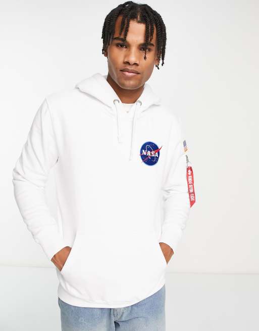 Alpha Industries NASA space shuttle back print hoodie in white