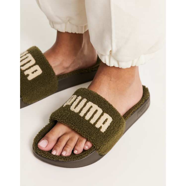 PUMA Leadcat sherpa slides in khaki and oatmeal ASOS