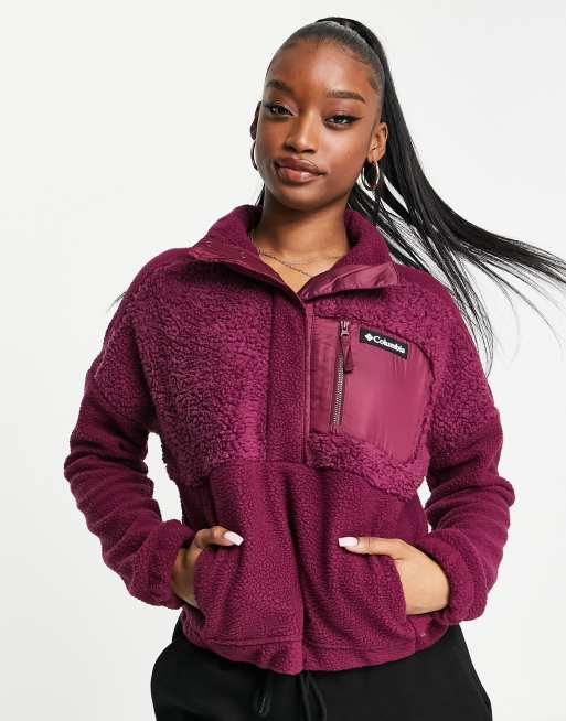 Columbia Lodge sherpa pullover fleece in burgundy Exclusive to ASOS
