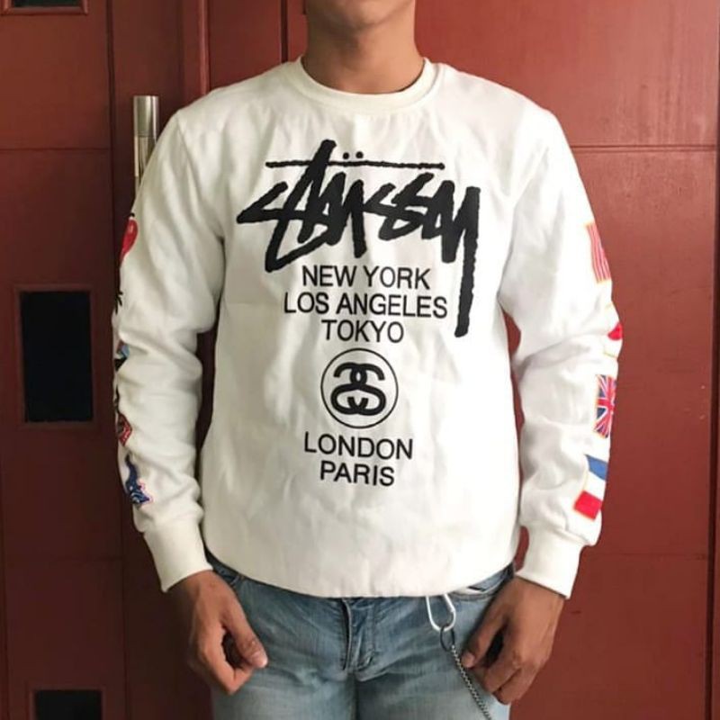 Jual Stussy world tour flag crewneck Shopee Indonesia
