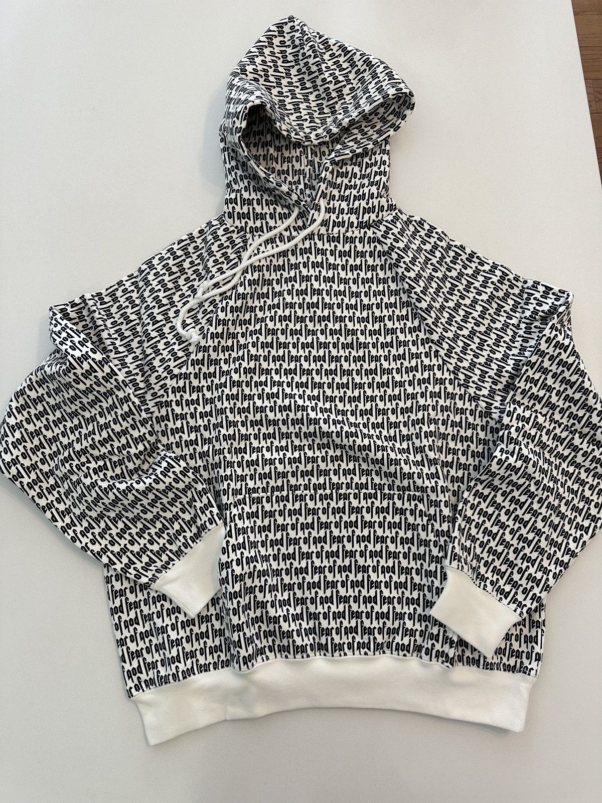 Black White Fear of God FOG All Over Print Hoodie Medium