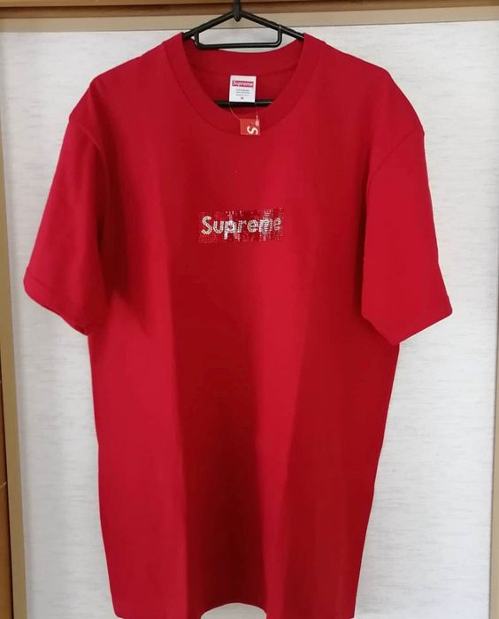 Supreme x Swarovski Crystal Box Logo Bogo Tee Shirt White Red New Size Medium