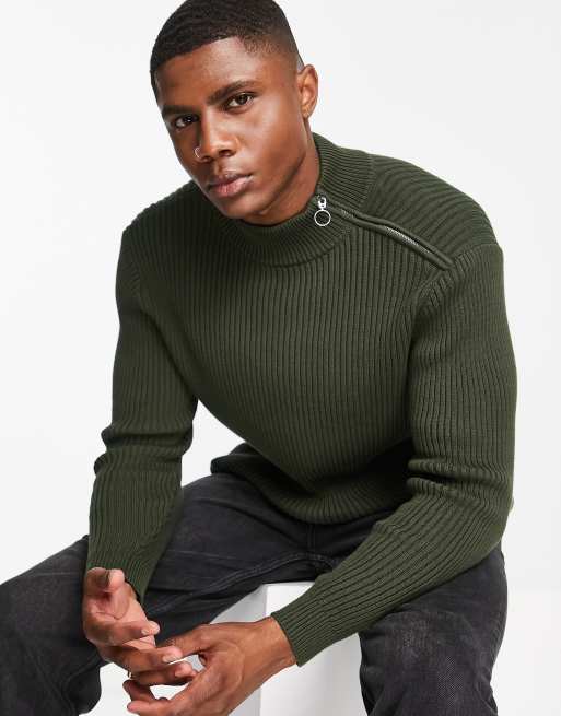 Crew neck with clearance zipper, Topman knitted turtle neck sweater with side zip in khaki ASOS clearance