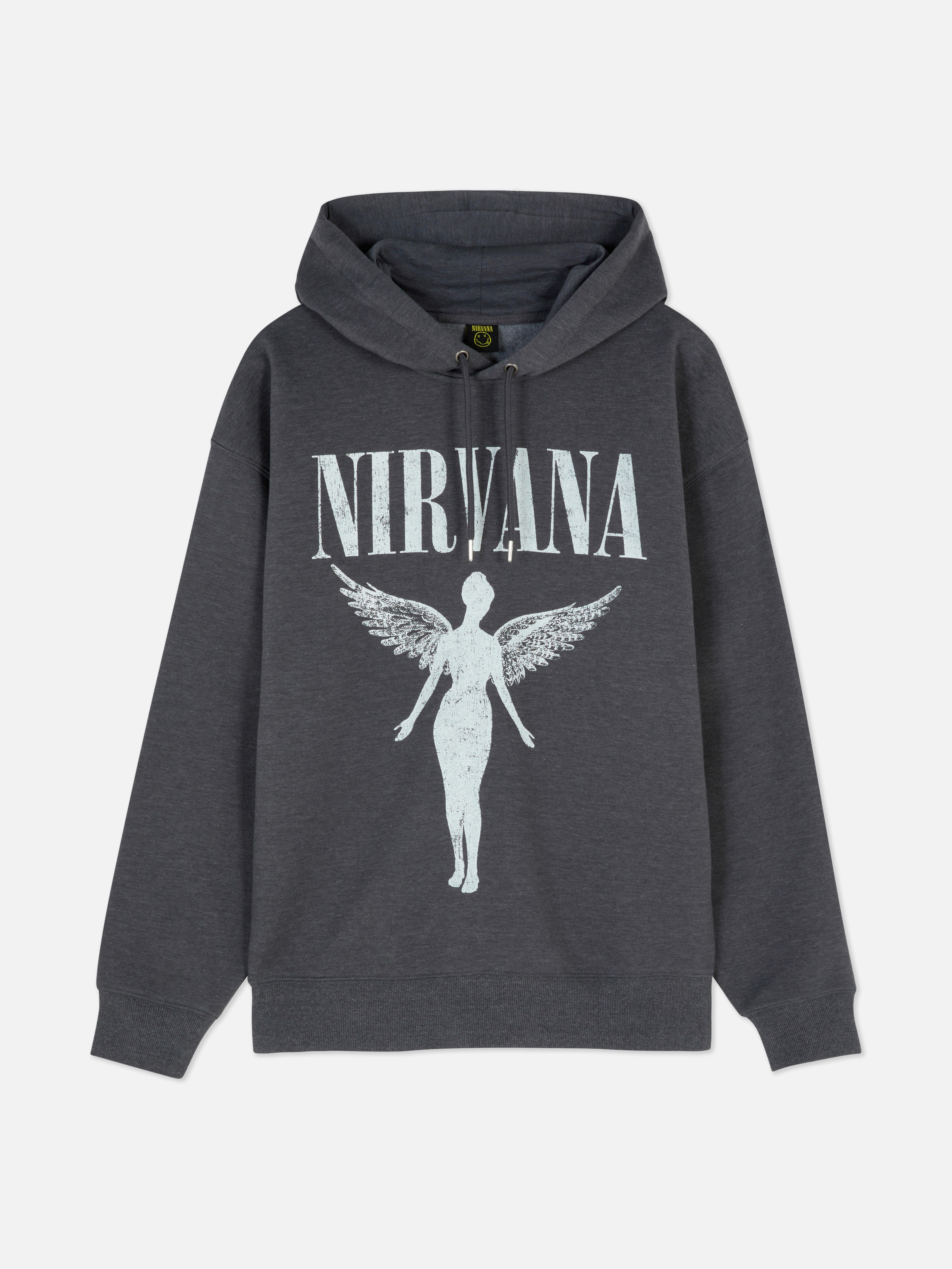 Nirvana clearance hoodie primark, Mens Black Nirvana Print Hoodie Primark clearance