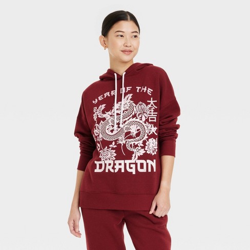 Women s Lunar New Year Year of the Dragon Graphic Hoodie Red XS
