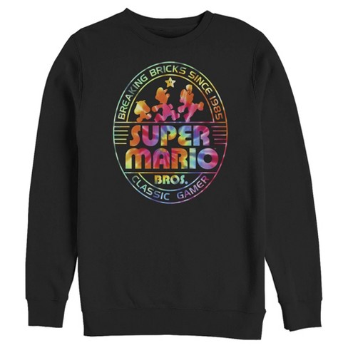 Nintendo clearance logo sweatshirt, Men s Nintendo Super Mario Brick Break 85 Tie Dye Logo Sweatshirt Black Small clearance