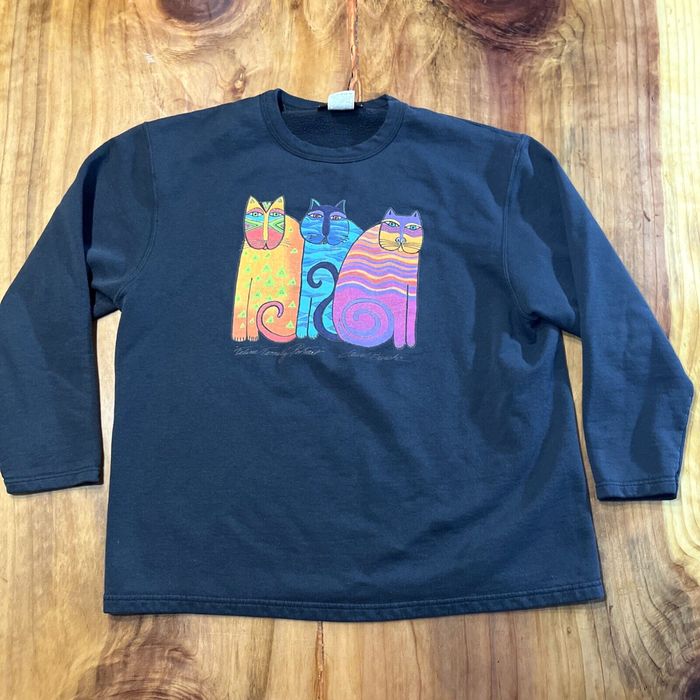 Laurel clearance burch sweatshirts, Vintage Laurel Burch Embroidered Cat Trio Sweatshirt clearance
