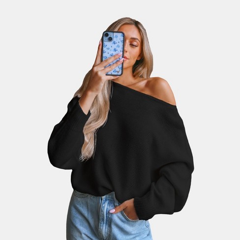 Women s Onyx Foldover Off the shoulder Sweater Cupshe l black