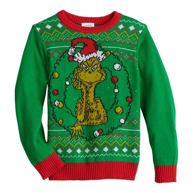 The Grinch Boys Graphic Holiday Crew Neck Sweater Size XS 2XL