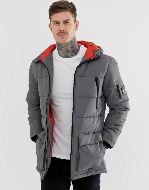 Nicce long line puffer jacket in gray with hood ASOS