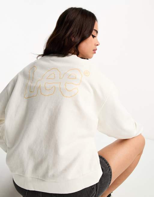 Lee clearance logo sweatshirt, Unisex Lee x ROARINGWILD Oversized Logo Sweatshirt in White clearance