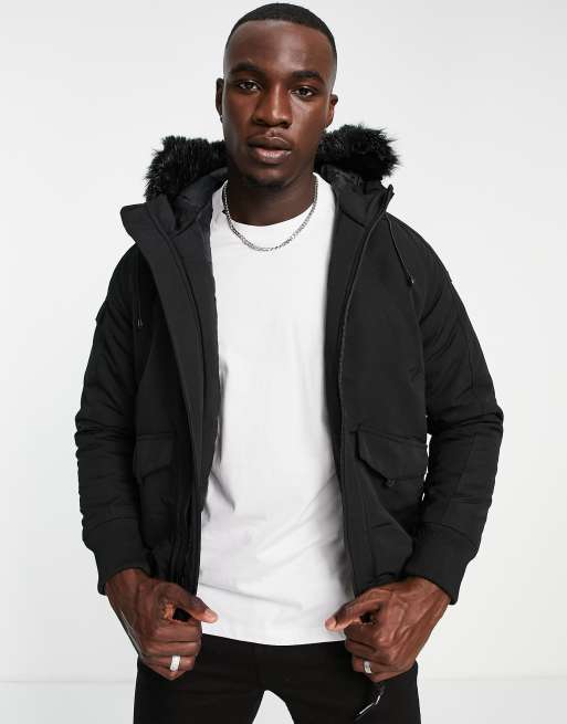 Good for nothing bomber jacket clearance in black with faux fur hood, Good For Nothing bomber jacket in black with faux fur hood exclusive to ASOS clearance