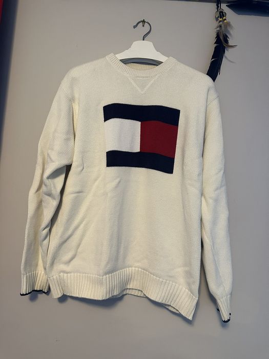 Tommy hilfiger sweater clearance big logo, Tommy Hilfiger Tommy Hilfiger Cream Big Logo Sweater Vintage Rare clearance