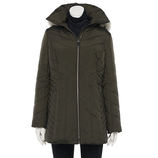 Women's tower by london clearance fog hooded puffer heavyweight jacket, London Fog Women s Chevron Coat with Faux Fur Trim clearance