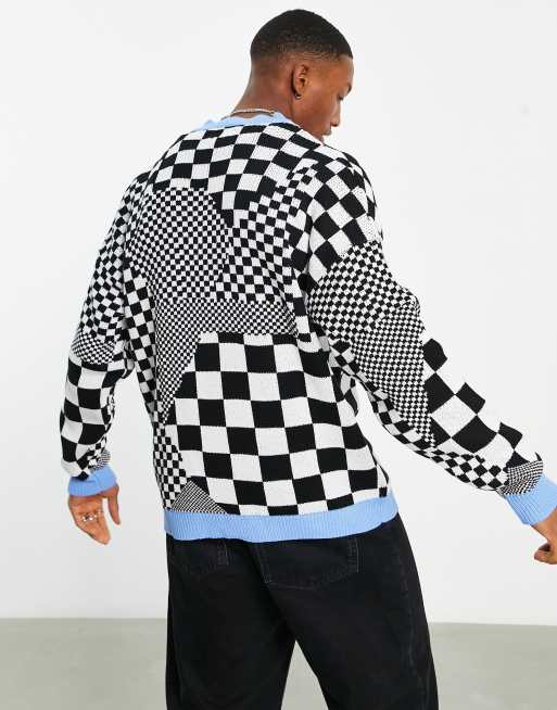 ASOS DESIGN knitted checkerboard cardigan in black white