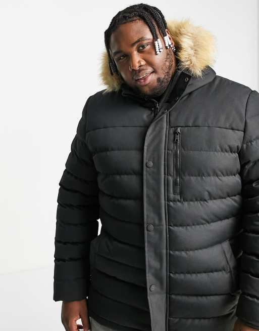 Threadbare Plus padded parka jacket with faux fur hood in black