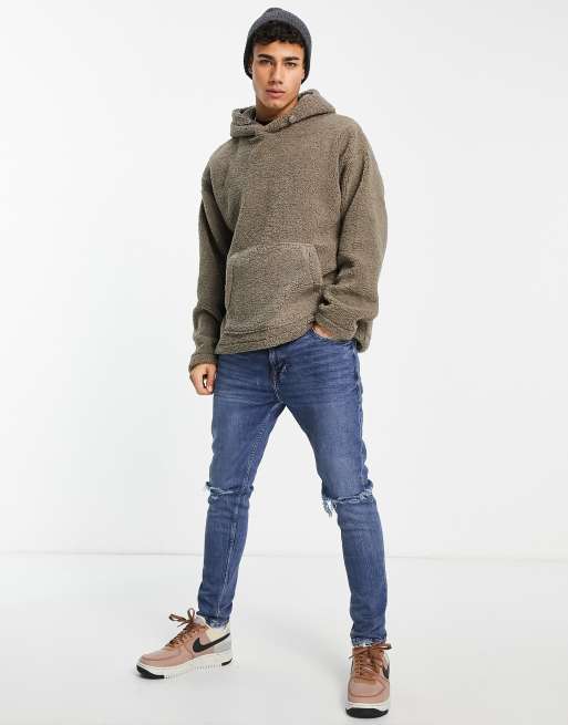 New look borg clearance hoodie, New Look borg hoodie in blue ASOS clearance