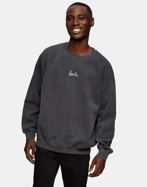 Topman clearance berlin sweatshirt, Topman oversized sweatshirt with Berlin embroidery in washed black clearance