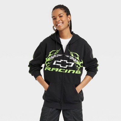 Women s Chevrolet Racing Zip Up Graphic Hoodie Black XS
